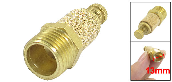 1/4" PT Thread Diameter 13mm Adjustable End Thread Dia. 10mm/ 0.39" Overall Size 32 x 13mm/ 1.3" x 0.5"(L*Max.D) Main Material Brass Color Gold Tone Net Weight 16g Package Content 1 x Pneumatic Muffler - Reviews