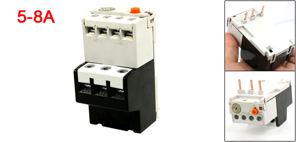 Product Name Thermal Overload Relay NO 98, 97 NC 96, 95 Phase 3 Ui 690V Current Range 5-8A Total Size (Approx.) 46 x 44 x 86mm/ 1.8" x 1.7" x 3.4" (L*W*H) Color Black Weight 127g Package Content 1 x Thermal Overload Relay - Reviews