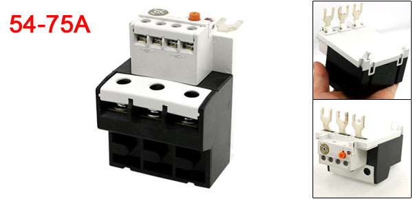 Product Name Thermal Overload Relay NO 98, 97 NC 96, 95 Phase 3 Ui 690V Current Range 54-75A Total Size (Approx.) 70 x 65 x 97mm/ 2.8" x 2.6" x 3.8" (L*W*T) Color Black Weight 323g Package Content 1 x Thermal Overload Relay - Reviews