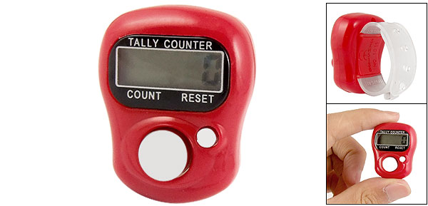 Adjustable Band 5-Digital LCD Finger Tally Counter Red