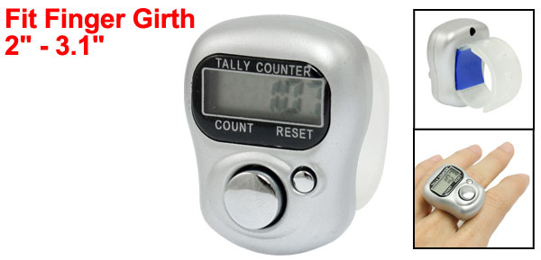 Product Name Finger Counter Main Material Plastic Case Size 3.5 x 2.8 x 1.4cm/1.4" x 1.1" x 0.6"(L*W*H) Band Size 10.5 x 1.5cm/ 4.1" x 0.6"(L*W) Fit Finger Girth 5 - 8cm/ 2" - 3.1" Case Color Silver Gray Band Color Clear Net Weight 10g Package Content 1 x Finger Counter - Reviews