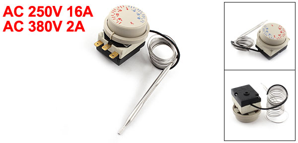 AC 380V 2AProbe Size 110 x 6.5mm / 4.3" x 0.26" (L*Max.D) Dial Diameter 43mm / 1.69" Total Size(Included Pin) 63 x 51 x 48mm / 2.5" x 2" x 1.9"(L*W*T) Material Metal, Plastic Color As Picture Shown Net Weight 110g Package 1 x Refrigerator Thermostat - Reviews