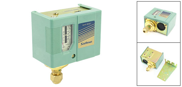 Product Name Pressure Switch Model NO. SSNS-106 Adjustable Range -50 - 6cmHg / -10 - 1 PSI Differential 20inHg - 851b/n² Flare Hex Nut Size 1.2cm/ 0.47" Hole Dia 4mm Thread Diameter 1cm/ 0.4" Overall Size 9.5 x 8 x 4.5cm/ 3.7" x 3.1" x 2.6" (L*W*H) Bracket Size 8 x 5.5 x 3cm/3.1" x 2.2" x 1.2"(L*W*H) Color Green, Gold Tone Material Metal Net Weight 361g Package 1 x Pressure Switch