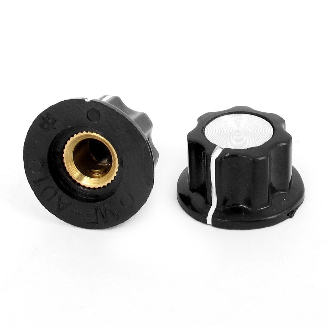Product Name Potentiometer Knob Cap Material Plastic, Metal Color Silver Tone, Black Knob Top Diameter 16mm/0.63" Shaft Hole Dia. 6mm / 1/4" Overall Size 20mm x 12mm/ 0.79" x 0.47"(D*H) Weight 10g Package Included 2 x Potentiometer Knob - Reviews