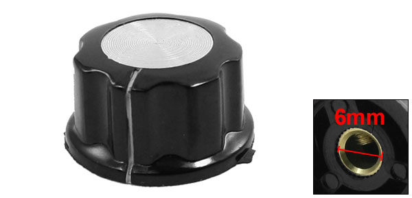 Product Name Rotary Knob Material Plastic, Metal Color Black, Silver Tone Fit for Shaft Hole Dia. 6mm/ 0.236" Knob Top Diameter 24mm/0.95" Overall Size 27 x 15mm/ 1" x 0.59"(D*H) Weight 8g Package Included 1 x Potentiometer Rotary Knobs - Reviews