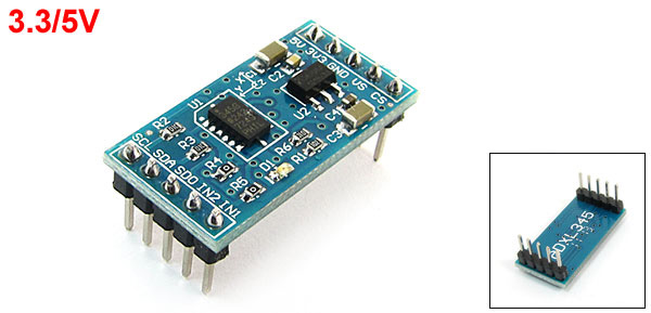 Product Name Digital Sensor Acceleration Module Model ADXL345 Support Voltage Input 3.3/5V Pin Pitch 2mm Total Size 28 x 14 x 11 mm / 1.1" x 0.55" x 0.43" (L*W*H) Material Plastic, Copper, PCB Main Color Blue, Black Weight 4g Package Content 1 x Digital Sensor Acceleration Module