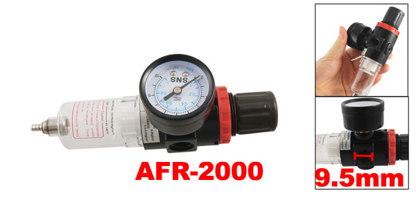 Product Name Pneumatic Regulator Model AFR-2000 Material Metal, Plastic Working Medium Air Max. Pressure 0.99MPa Adjustable Pressure Range 0.05-0.9Mpa Joint Pipe Thread Diameter 13mm Joint Pipe Size 1/4 PT Gauge Connector Thread Diameter 9.5mm Total Size 39 x 155mm/ 1.5" x 6.1" (D * H) Gauge Range 0 - 10kg/cm² / 0 - 1MPa Pressure Gauge Size 40 x 16mm/ 1.6" x 1" (D * T) Color Clear, Black, Red Weight 245g Package Content 1 x Pneumatic Regulator 1 x Pressure Gauge 1 x Install Bracket - Reviews