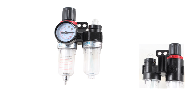 Product Name Air Source Treatment Filter Model AFR2000+AL2000 Material Metal, Plastic Working Medium Air Max. Pressure 0.95Mpa / 9.5Bar Adjustable Pressure Range 0.15-0.85MPa / 1.5-8.5Bar Joint Pipe Thread Diamter 11.4mm Joint Pipe Size 1/4 PT Gauge Range 0-1MPa / 0-10kgf/cm2 Gauge Connector Dia 8.56mm Mounting Hole Diameter 7,5mm Gauge Size 42 x 24mm/ 1.6" x 1"(D * H) Total Size 90 x 53 x 155mm / 3.5" x 2.2" x 6"(L*W*H) Color Black, Clear Weight 305g Package Content 1 x Air Source Treatment Filter 1 x Pressure Gauge - Reviews