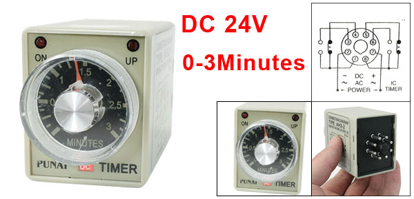 AH3-2 DC 24V 8 Pins DPDT 0-3 Minutes 3Min Power on Delay Timer Time Relay