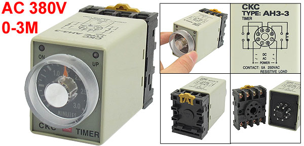 AH3-3 380VAC Power On 0-3 Minutes Delay Timer Time Relay + Black Base
