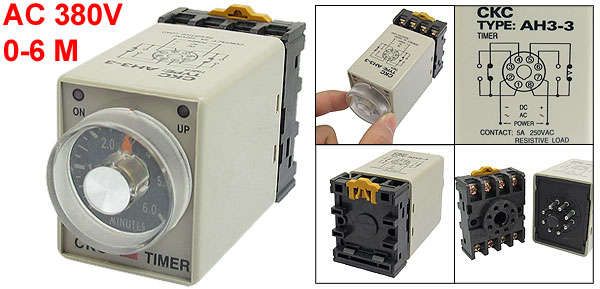 AH3-3 380VAC Power On 0-6Min. 6 Minutes Delay Timer Time Relay + Black Base