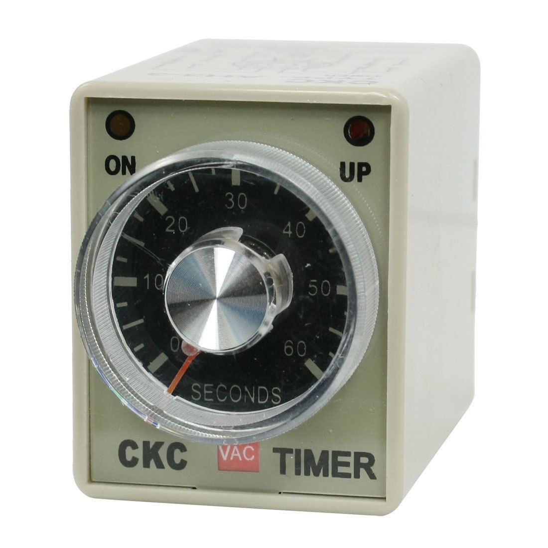 Product Name Time Relay Model Number AH3-3 Contact Resistive Load AC 220 5A Rated Voltage AC 36V 50/60Hz Contact Type DPDT, 2NO 2NC Number of Terminals 8 Pins Time Range 0-60 Seconds Indicator Operation On-Up Two LED Indicator Light External Material Plastic & Metal Mounted Size 50 x 40 x 59mm / 2" x 1.6" x 2.3"(L*W*H) Total Length 80mm/3.1" Color Gray Net Weight 64g Package Content 1 x Power On Time Relay