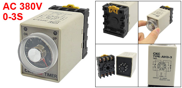 AH3-3 AC 380V 0-3S 3 Second 8P Terminals Delay Timer Time Relay w Base