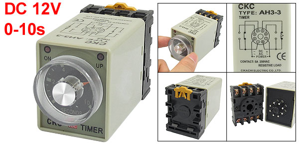 AH3-3 DC 12V 0-10 Sec 10s Timer Power ON Delay Time Relay w Base Socket