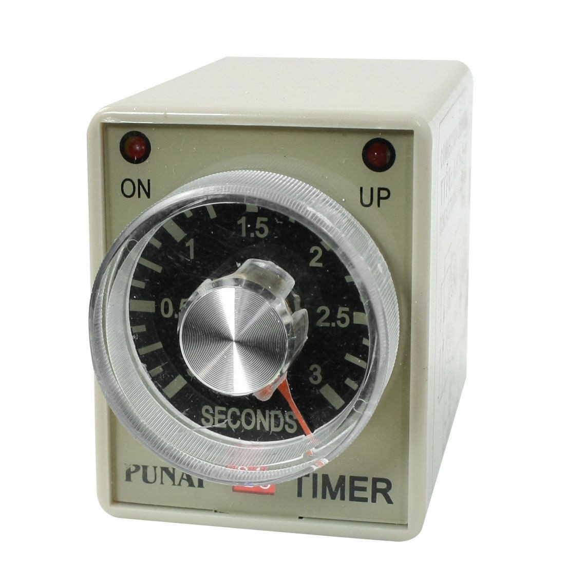 Product Name Time Relay Model Number AH3-3 Contact Resistive Load AC 220 5A Rated Voltage DC 24V Contact Type DPDT, 2NO 2NC Number of Terminals 8 Pins Time Range 0-3 Seconds Indicator Operation On-Up Two LED Indicator Light External Material Plastic & Metal Mounted Size 50 x 40 x 58mm / 2" x 1.6" x 2.3"(L*W*H) Total Length 79mm/3.1" Color Gray Net Weight 62g Package Content 1 x Power On Time Relay