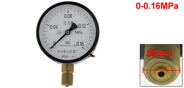 Air Compressor 0-0.16MPa 20mm Threaded Dial Pressure Gauge