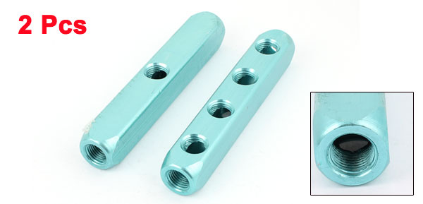 Air Compressor 1/4BSP 4 Way Hose Pipe Inline Manifold Block Splitter Teal 2 Pcs