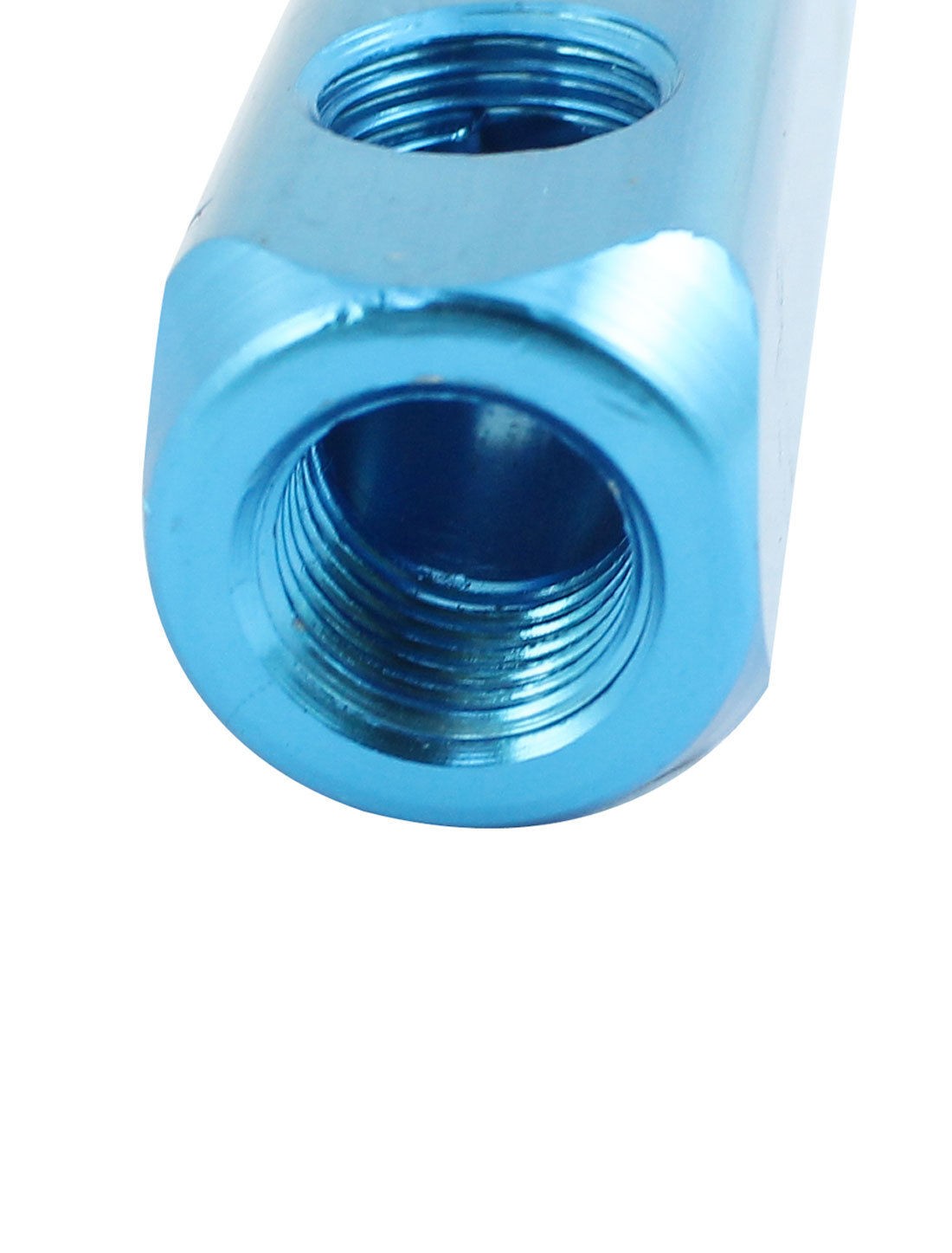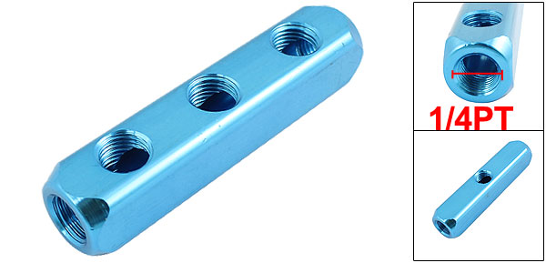 Product Name Manifold Block Threaded Ports Quantity 6 Way Quantity 3 Threaded Port Dia 11.6mm / 1/4PT Overall Size 95 x 20 x 20mm /3.7" x 0.8" x 0.8" (L*W*H) Color Teal Blue Material Aluminum Net Weight 63g Package 1 x Manifold Block - Reviews