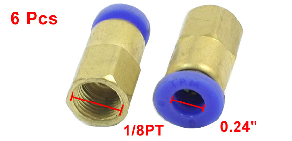 Air Compressor 1/8PT Female Thread to 6mm Hole Push in Quick Coupler 6Pcs