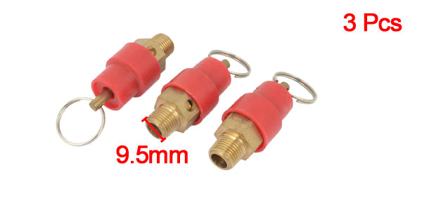 Air Compressor 1/8PT Male Thread Safety Relief Valve Red Gold Tone 3 PCS