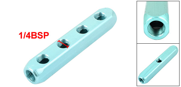 Product Name Manifold Block Threaded Ports Quantity 7 Position 4 Threaded Port Dia 12mm / 1/4BSP Overall Size 125 x 20 x 20mm/ 5" x 0.8" x 0.8" (L*W*H) Color Teal Material Aluminum Net Weight 83g Package 1 x Manifold Block - Reviews
