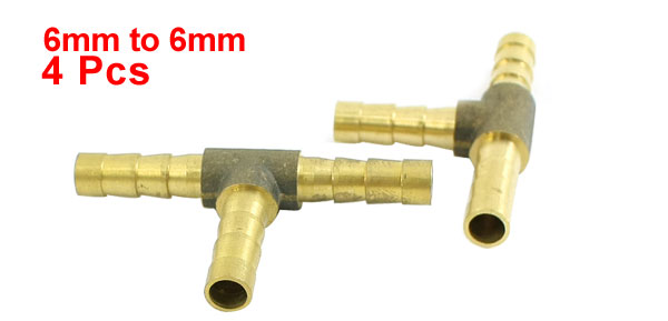 Air Compressor 6mm to 6mm Brass T-Shaped Barb Fittings Air Connector 4PCS