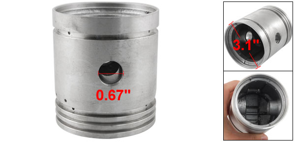 Product Name Air Compressor Piston Material Aluminum Alloy Pin Bore Diameter 17mm/ 0.67" Size (Approx) 80 x 88mm/ 3.1" x 3.46" (OD*H) Piston Slot Distance 3mm / 0.12" Color Silver Tone Weight 322g Package Content 1 x Air Compressor Piston - Reviews