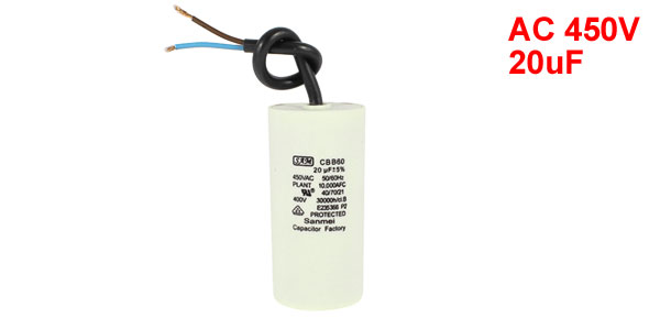 Terminal Wire Ambient Temperature 25/70/21 Rated Capacitance 20uF Tolerance ±5% Rated Frequency 50/60Hz Rated Voltage 450V AC Size 4 x 9.5cm/ 1.6" x 3.7"(D*H) Wire Length 18cm/ 7.1" Main Color White Net Weight 126g Package Content 1 x Motor Capacitor - Reviews