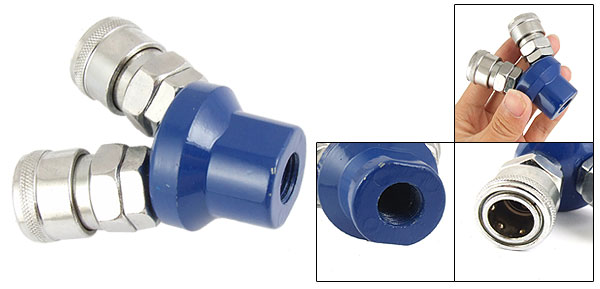Product Name Air Compressor Adaper Color Silver Tone, Blue Female Thread 1.25mm/ 1/2" Connect Pipe Diameter 1.3mm/ 1/2" Total Size 68 x 65 x 38mm/ 2.7" x 2.6" x 1.5"(L*W*H) Material Metal Weight 176g Package 1 x Air Compressor Splitter - Reviews