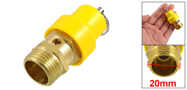 Product Name Pressure Relief Valve Material Plastic, Metal Main Color Yellow, Brass Tone Working Pressure 8 Kg (0.8MPa) Thread Diameter 20mm / 0.78" Ring Diameter 16mm / 0.63" Valve Total Size 75 x 27mm / 3" x 1.1" (L*Max.D) Weight 61g Package Content 1 x Pressure Relief Valve - Reviews