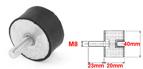 Product Name Rubber Vibration Mount Male Thread Size M8 x 23mm(Dia.*L) Female Thread Size M8 x 12mm(Dia.*L) Rubber Size 40 x 20mm /1.6" x 0.8" (Dia.*H) Material Metal, Rubber Color Black, Silver Tone Weight 79g Package Content 1 x Rubber Vibration Mount - Reviews