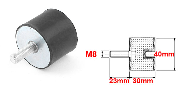 Product Name Rubber Vibration Mount Male Thread Size M8 x 23mm(Dia.*L) Female Thread Size M8x8mm(Dia.*L) Rubber Size 40 x 30mm /1.6" x 1.2" (Dia.*H) Material Metal, Rubber Color Black, Silver Tone Weight 96g Package Content 1 x Rubber Vibration Mount - Reviews
