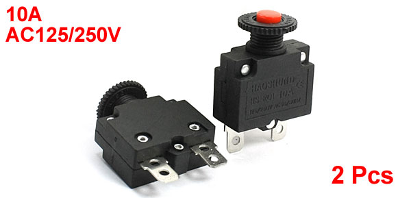 Product Name Circuit Breaker Rated Current 10A Rated Voltage AC125/250V Frequency 50/60Hz Thread Dia (Approx.) 10mm /0.39" Overall Size (Approx.) 4.5 x 3 x 1.8cm/1.8" x 1.2" x 0.7"(L*W*H ) Material Plastic, Metal Color Black, Red Weight 25g Package Content 2 x Circuit Breaker - Reviews