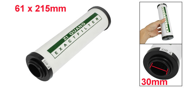 DetailsAir Compressor Parts 30mm Inner Dia Muffler Filter 2.4" x 8.5"  Product Name Air Filter Material Plastic, Filter Fabric Color White, Black Inner Diameter 30mm/ 1.2" Overall Size 61 x 215mm/ 2.4" x 8.5" (D*H) Weight 212g Package 1 x Air Filter