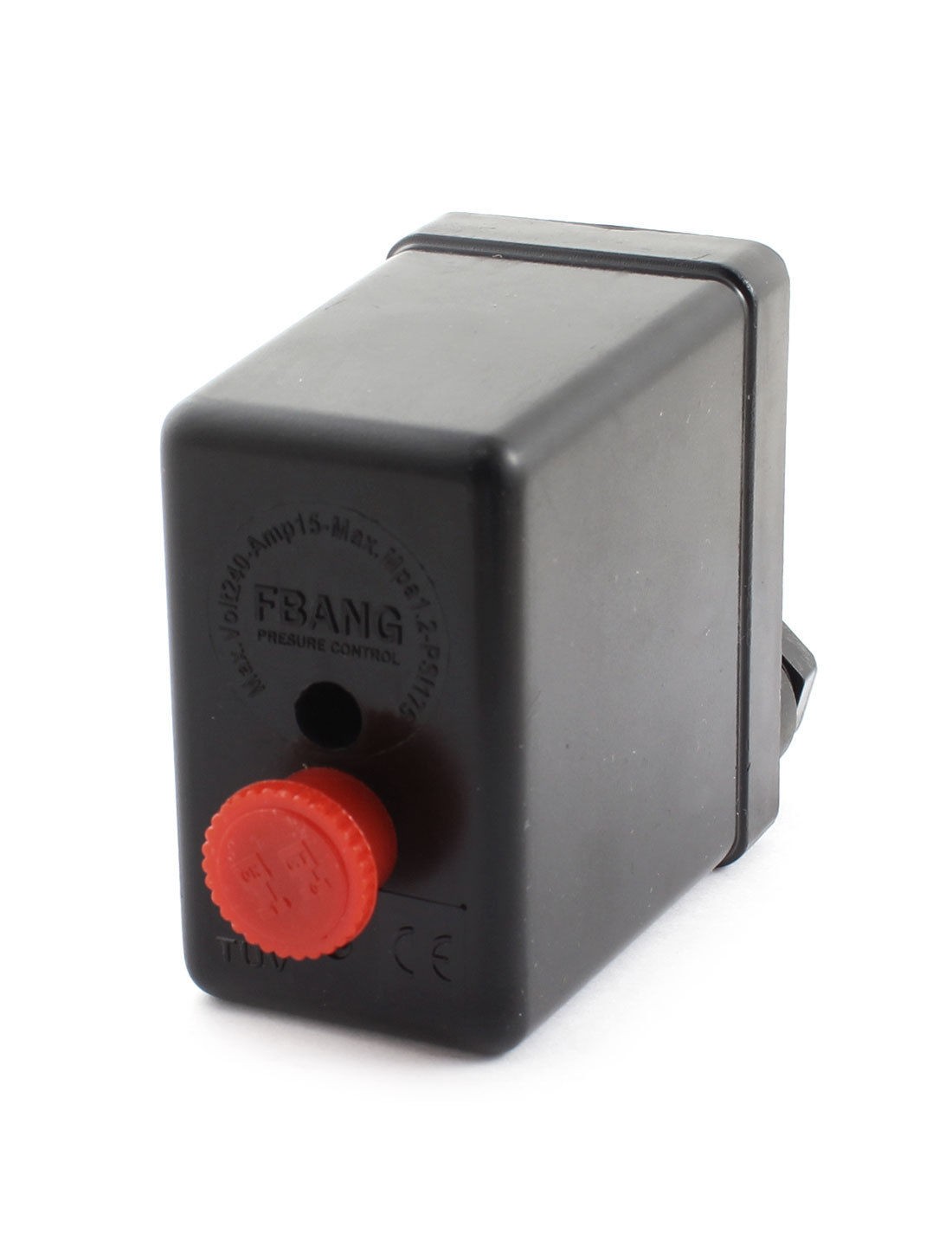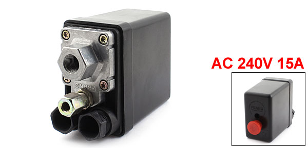 Product Name Air Compressor Pressure Switch Type Singel Port Max. Voltage AC 240V Current 15A Pressure 175PSI, 1.2 Mpa Port Size 11mm/ 1/4PT Bronze Tone Connector 14mm/0.55''(Hex), 6mm/0.24''(Dia Hole) Black Connector Inner Dia. 14mm/0.55'' Total Size 12.8 x 8 x 5cm/ 5" x 3.1" x 2" (L*W*T) Button Diameter 2cm/ 0.8" Material Metal, Plastic Main Color Black, Red Weight 280g Package Content 1 x Air Compressor Pressure Switch - Reviews