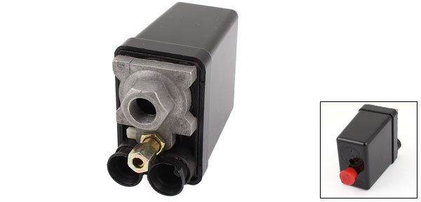 Product Name Air Compressor Pressure Switch Type 1 Ports, 1 Phase, DPST, NO Max. Voltage AC 240V Max. Current 20A Pressure 175PSI, 12 Bar Joint Thread Diameter 15mm/1/4NPT Bronze Tone Connector 10mm/0.4" Black Connector Inner Dia. 18mm/0.71" Total Size 12.9 x 8.1 x 5.2cm/ 5.1" x 3.2" x 2" (L*W*T) Button Diameter 2.1cm/ 0.8" Material Metal, Plastic Main Color Black, Red Weight 290g Package Content 1 x Air Compressor Pressure Switch - Reviews