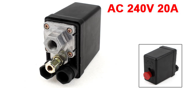 Product Name Air Compressor Pressure Switch Type Single Port Max. Voltage AC 240V Max. Current 20A Pressure 175PSI, 12 Bar Joint Hole Dia.(Each) 13mm/ 0.5" Female Thread Hole Dia. 1/4" (NPT) Total Size 13 x 8 x 5cm/ 5.1" x 3.1" x 2" (L*W*T) Button Diameter 2cm/ 0.8" Material Metal, Plastic Main Color Black, Red Weight 281g Package Content 1 x Air Compressor Pressure Switch - Reviews