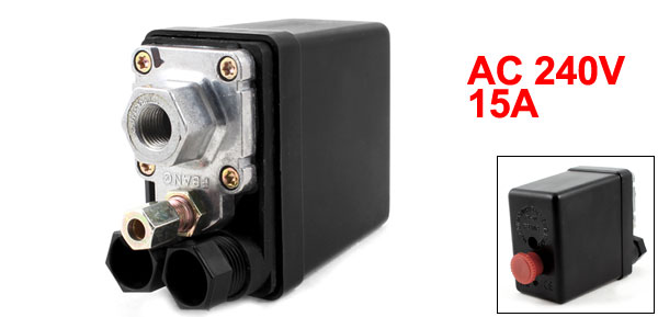 Product Name Air Compressor Pressure Switch Type 1 Port, 1 Phase, Normally Closed(NC) Max. Voltage AC 240V Max. Current 15A Pressure 175PSI, 12 Bar Joint Thread Hole Dia.(Each) 1/4" (NPT) Inlet Hole Dia 7mm/ 7/25" Inlet Thread Dia. 11mm/ 1/4"NPT Total Size 13 x 8 x 5cm/ 5.1" x 3.1" x 2" (L*W*T) Button Diameter 2cm/ 0.8" Material Metal, Plastic Main Color Black, Red Weight 282g Package Content 1 x Air Compressor Pressure Switch - Reviews
