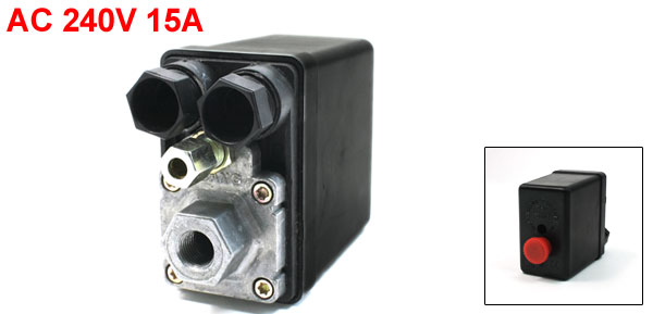 Product Name Air Compressor Pressure Switch Type 1 Port, Normally Closed(NC) Max. Voltage AC 240V Current 15A Pressure 175PSI, 12 Bar Joint Thread Hole Dia. 1/4" (NPT) Inlet Hole Dia.(Each) 16mm/ 0.63" Inlet Thread Dia. 6mm/ 0.23" Total Size 12.5 x 8 x 5cm/ 4.9" x 3.1" x 2" (L*W*T) Button Diameter 2cm/ 0.8" Material Metal, Plastic Main Color Black, Red Weight 300g Package Content 1 x Air Compressor Pressure Switch - Reviews
