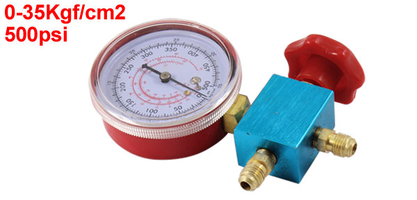 Product Name Single Manifold Gauge Color Red, Gold Tone, Blue, Clear Material Metal, Plastic Thread Diameter 11mm/1/8" NPT Guage Pressure Range 0-35Kgf/cm2, 500psi Guage Size 7 x 3cm/2.8" x 1.2"(D*H) Total Size 13 x 9cm/ 5.1" x 3.5"(L*W) Net Weight 258g Package 1 x Single Manifold Gauge - Reviews