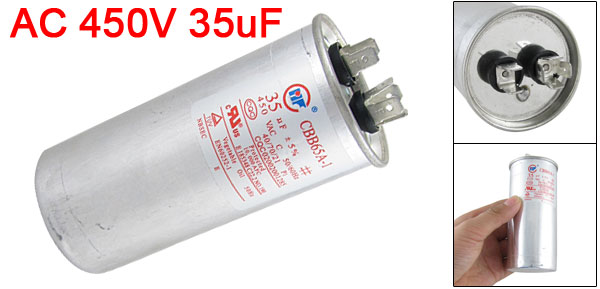 Product Name Motor Capacitor Model No. CBB65A-1 Dielectric Material Metallized Polypropylene Film Housing Material Metal Capacitance 35uF Tolerance 5% Rated Voltage 450V AC Frequency 50/60Hz Body Dimension 5 x 12.2cm/ 2" x 4.8" (D * H) Operating Temperature 40/70/21 Color Silver Tone Weight 202g Package Content 1 x Motor Capacitor - Reviews