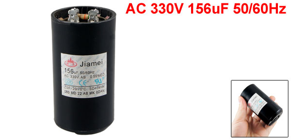 Product Name Motor Capacitor Dielectric Material Metallized Polypropylene Capacitance 156uF Rated Voltage AC 330V Frequency 50/60Hz Total Size(Approx) 8.3 x 4.6cm / 3.3" x 1.8" (H*D) Color Black Weight 138g Package Content 1 x Motor Capacitor - Reviews