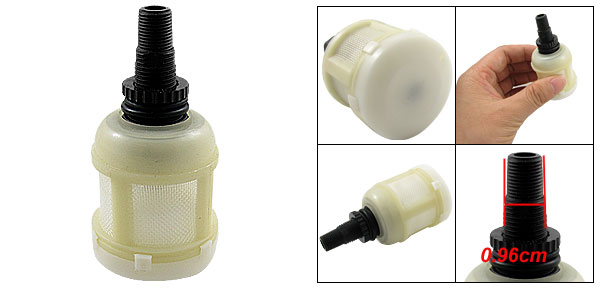 DetailsAir Filters System Water Cup Automatic Drain Valve Ebicq  Product Name Auto Drain Valve Material Plastic Color White, Black Total Size 6.5 x 4cm /2.5" x 1.6"(L*Max.D) Thread Diameter 0.96cm / 0.37" Net Weight 27g Package Content 1 x Auto Drain Valve