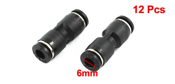 Air Piping 2 Ways 6mm to 6mm Straight Coupler Tube Quick Joint Fittings 12 Pcs