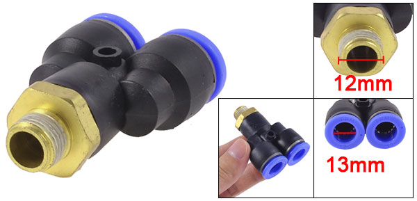 Air Piping 3 Ways 12mm x 1/4" PT Male Thread Y Shape Quick Fitting Coupler