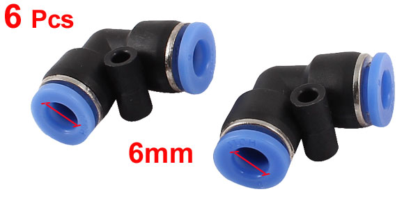 Air Pneumatic 6mm Connector 90 Degree Plastic Pipe Quick Fittings Adapter 6 Pcs