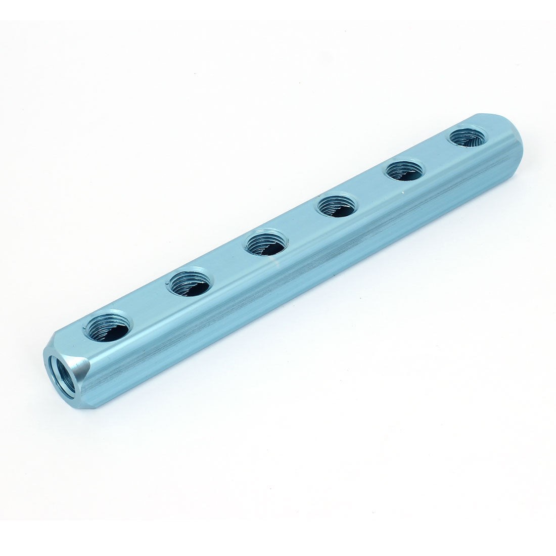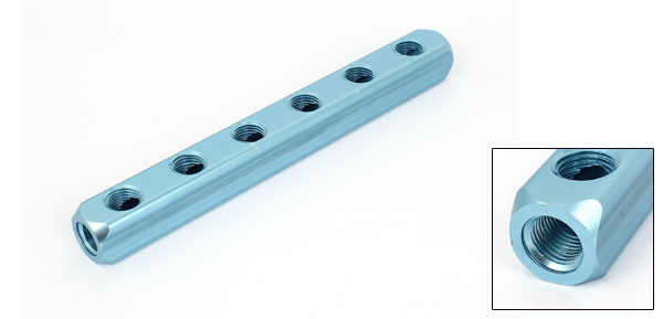 Product Name Manifold Block Splitter Threaded Ports Quantity 9 Way Quantity 6 Color Teal Material Aluminum Thread Type 1/4BSP Female Thread Dia. 11mm Overall Size 185 x 20 x 20mm / 7.3" x 0.8" x 0.8" (L*W*H) Weight 122g Package 1 x Manifold Block Splitter - Reviews
