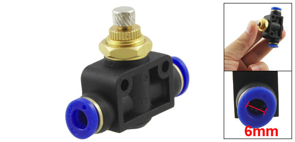 Product Name Pneumatic Speed Control Fittings Type 6mm to 6mm One Touch Connector Material Plastic, Metal Dimension (Approx) 4.5 x 4 x 1.8cm/ 1.7" x 1.5" x 0.7" (L*W*T) Color Black, Blue Weight 28g Package Content 1 x Pneumatic Speed Control Fittings - Reviews