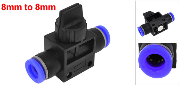 DetailsAir Pneumatic Speed Control 8mm to 8mm Quick Connector Fitting  Product Name Pneumatic Speed Control Fittings Type 8mm to 8mm Connector Material Plastic, Metal Dimension (Approx) 5.1x 4 x 1.7cm/ 2" x 1.6" x 0.67" (L*W*T) Mounting Hole Dia 4mm/ 0.16" Mounting Hole Distance 17 x 13mm/ 0.67" x 0.51"(L*W) Color Black, Blue Weight 18g Package Content 1 x Pneumatic Speed Control Fittings