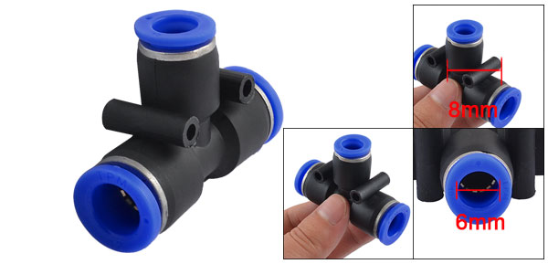 Air Pneumatic Tee Adapters 8mm to 6mm One Touch Fittings Connector Black Blue